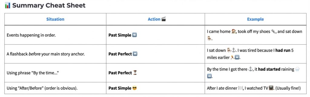 The Golden Rule: 🥇 You cannot use the Past Perfect flashback ⏪ unless you already have a Past Simple anchor ⚓️ in the story.