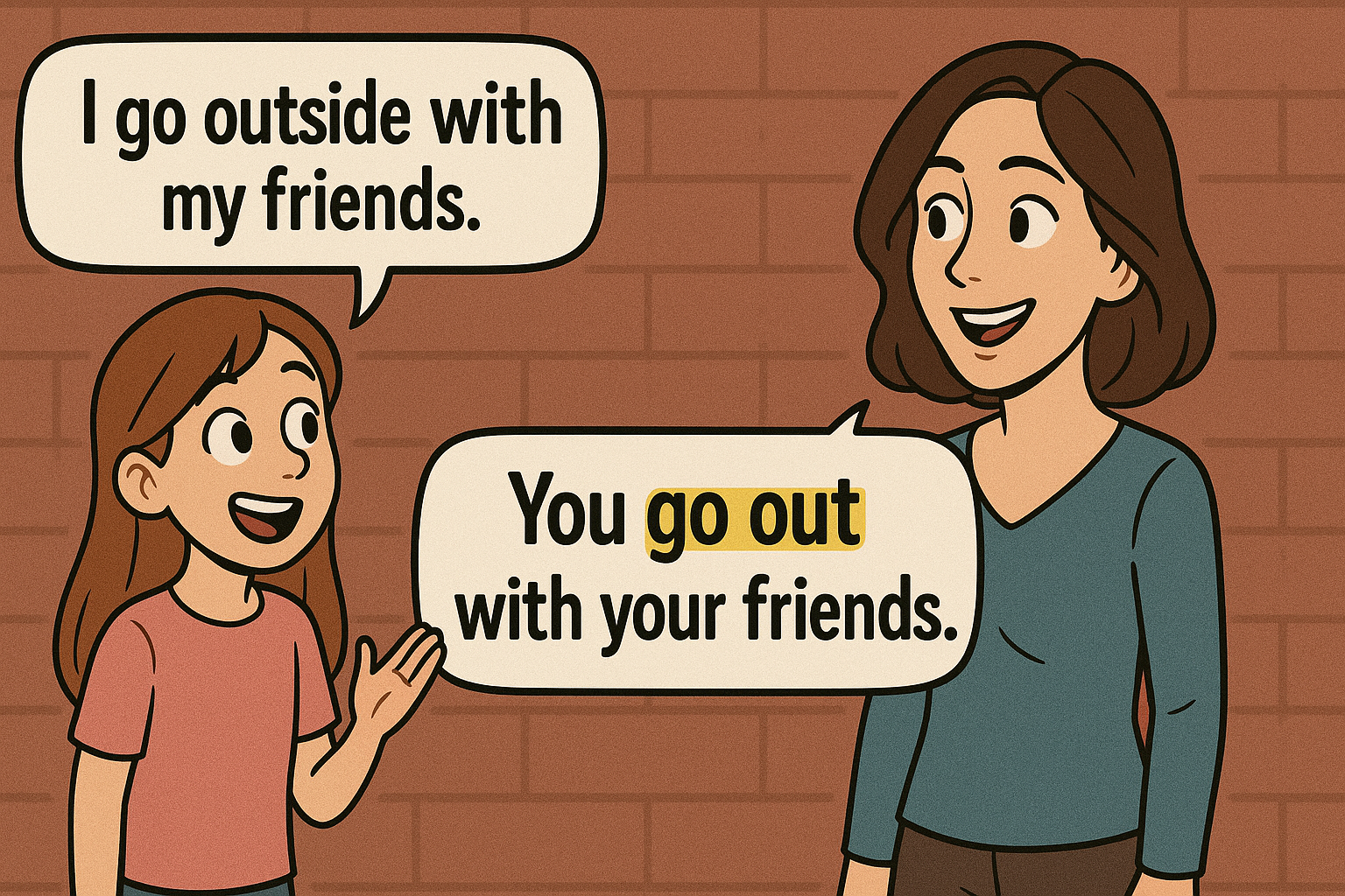3. I hang out my friends on the weekend -> I hang out WITH my friends on the weekend (Preposition ‘with’ needed)