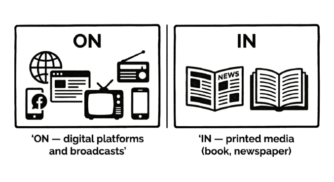 On the internet, on a website, on social media, on the radio, on TV, on my phone.