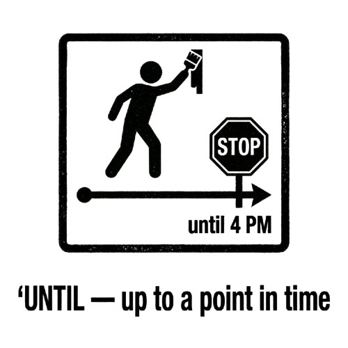 Correct: “I will work until 6 PM.” (I am working continuously from now to 6).