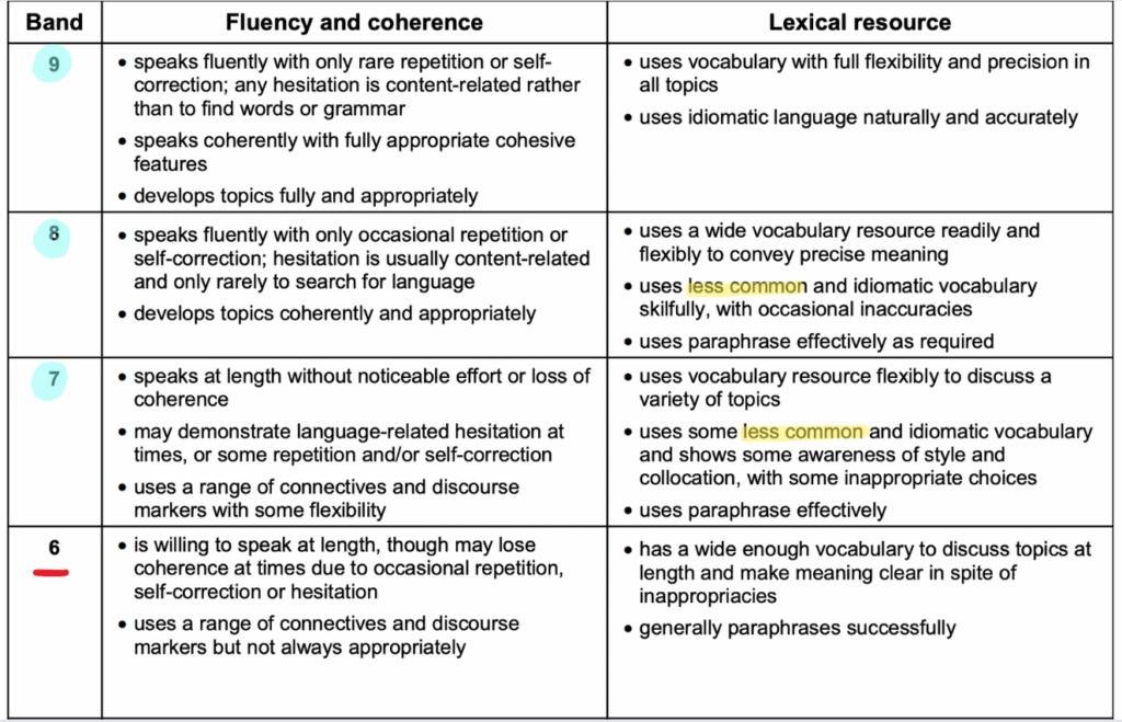 Less common language is REQUIRED in order to get Band 7-9 in Vocabulary, while it is NOT essential for Band 6.