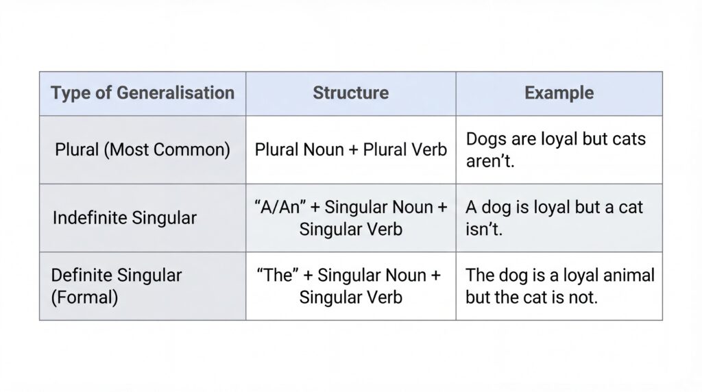 Mistake 5: Generalisation Mismatch (Singular Noun + Singular Verb when meaning Plural)