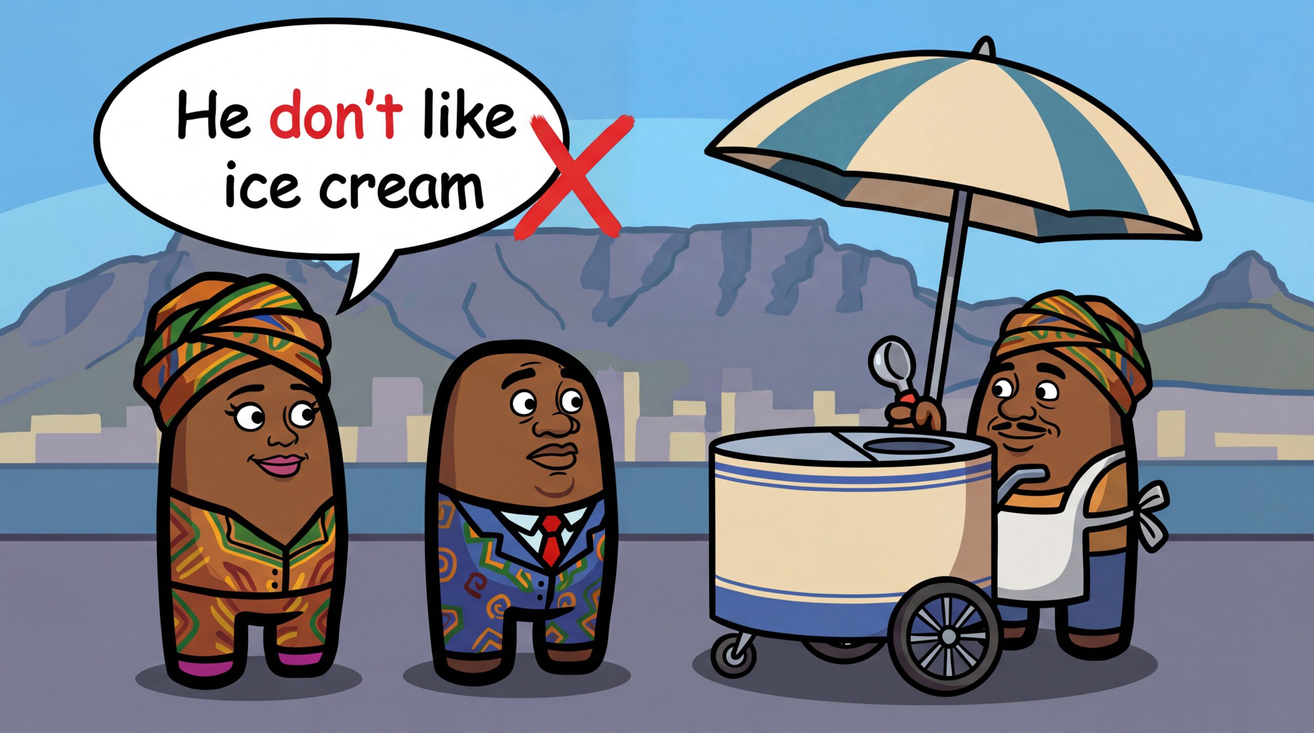 He like, She go, It make me, He want ❌